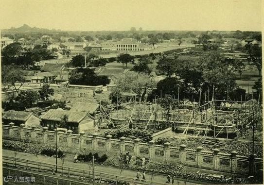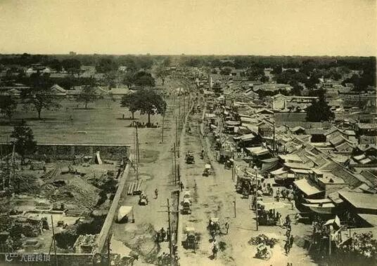 大清门,民国改为中华门,是真正的“国门”,位于天安门正南,50年代扩建天安门广场时拆除。照片上是大清门的内侧,自天安门广场拍摄。