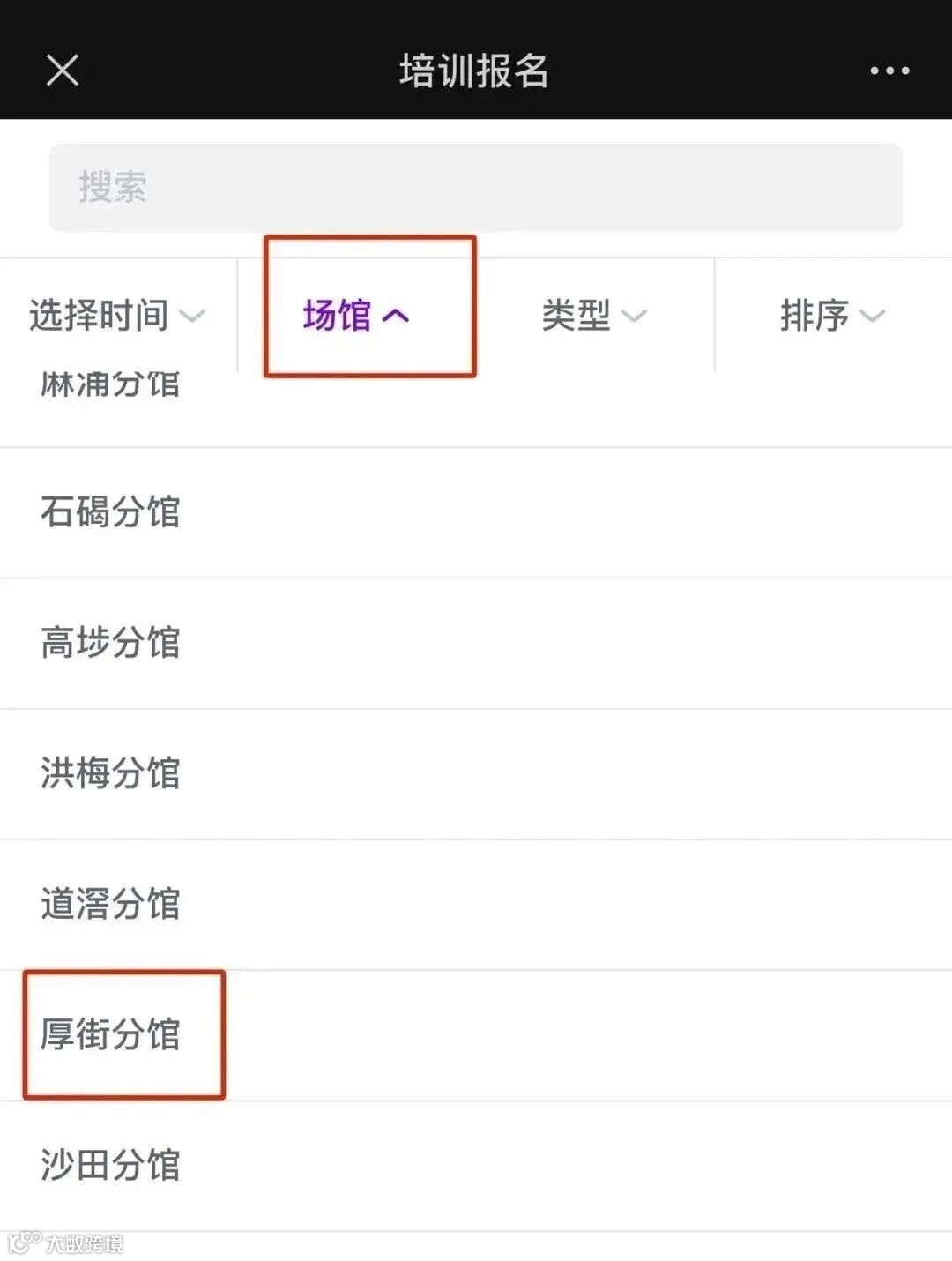报名流程:关注“文化莞家”微信公众号——找到菜单栏“我要订——培训报名”——点击进入后点击“场馆”选择“厚街分馆”可以查看所有待开展的项目。