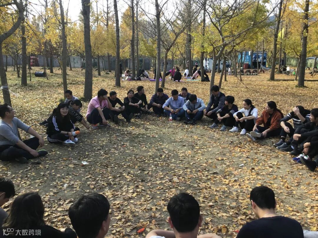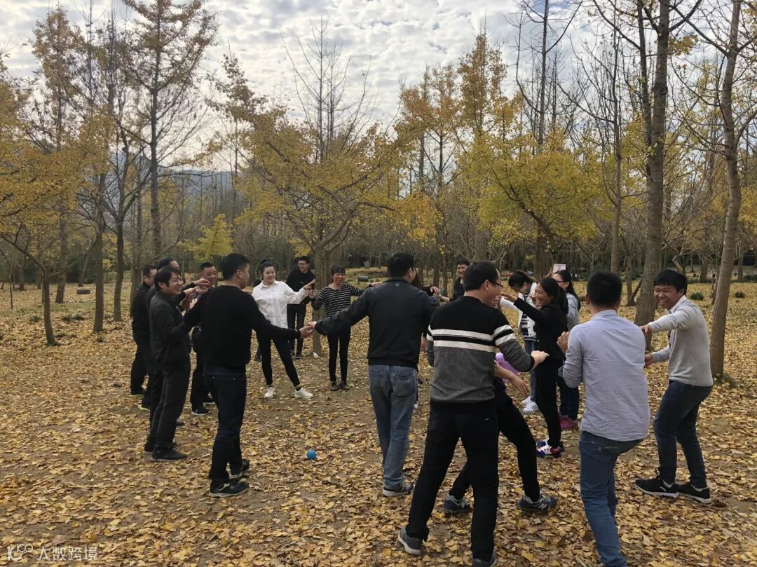 每组队员“桥”手相连,坐在地上,听指令,依最快的速度集体起立,6个组形成6个圈,看起来还容易,当6个圈变成3个圈,就没有那么容易了,对团队的协作极具有挑战,试想如果变成1个圈呢,……