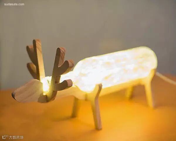 17、红酒瓶和木头制作的动物灯