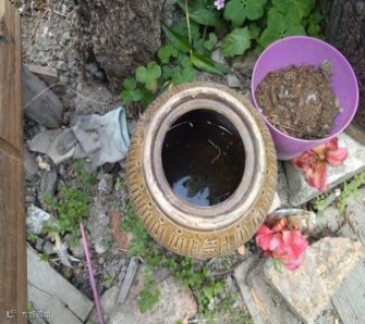 周围废弃或者闲置的盆、罐、瓶等