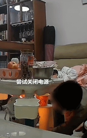 察觉起火的哥哥第一时间尝试关闭取暖器电源,发现无法控制后立即拔掉插头,并将取暖器移到空地,远离塑料桌。