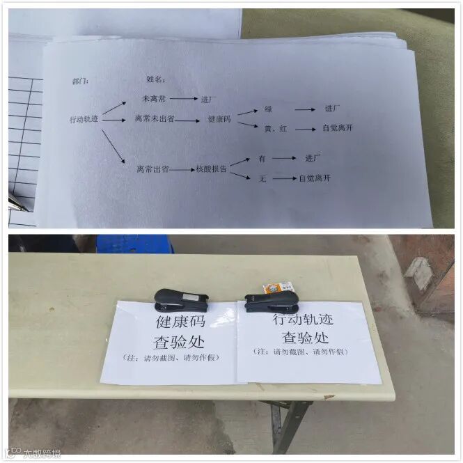 员工们佩戴口罩依次出示苏康码和行动轨迹,并登记自己的个人信息,有序进厂,接受体温测量。驾车人员配合保安对车辆进行喷洒消毒。