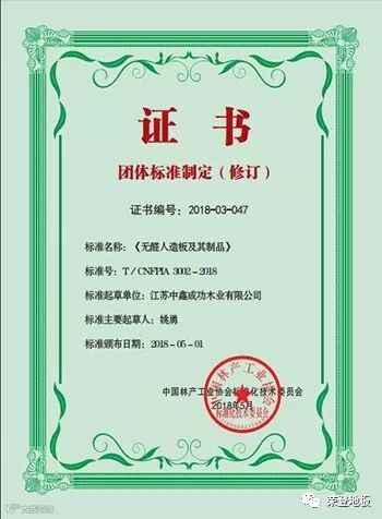 近日,荣登地板参与起草的《无醛人造板及其制品》国家标准正式公布,并与2018年8月1日开始实施,总经理姚勇先生作为荣登地板起草单位代表人,颁获标准制定修订证书。