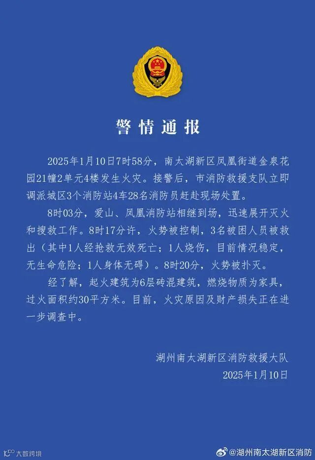 据浙江湖州南太湖新区消防通报