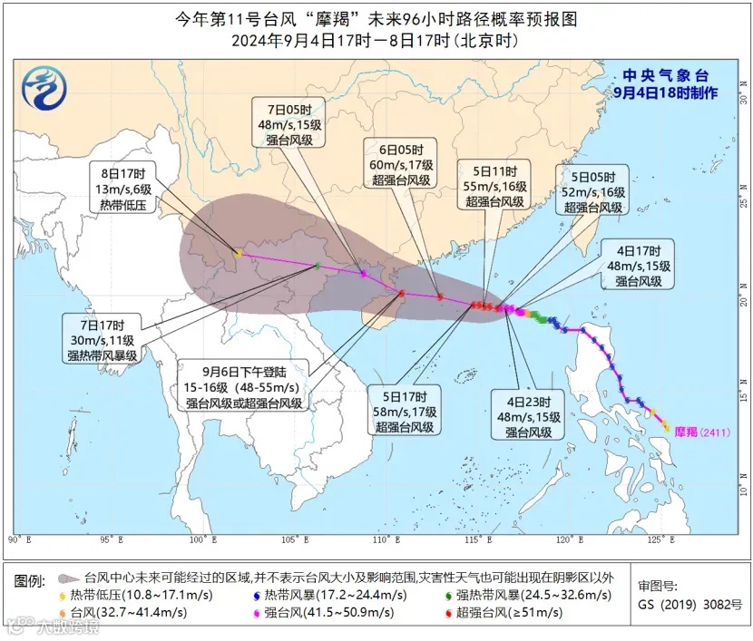 预计“摩羯”(强热带风暴级)将于6日中午到夜间在