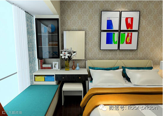 书桌“嫁”上飘窗台,既可以满足女主人的梳妆打扮,又可满足男主人使用电脑,一举两得。