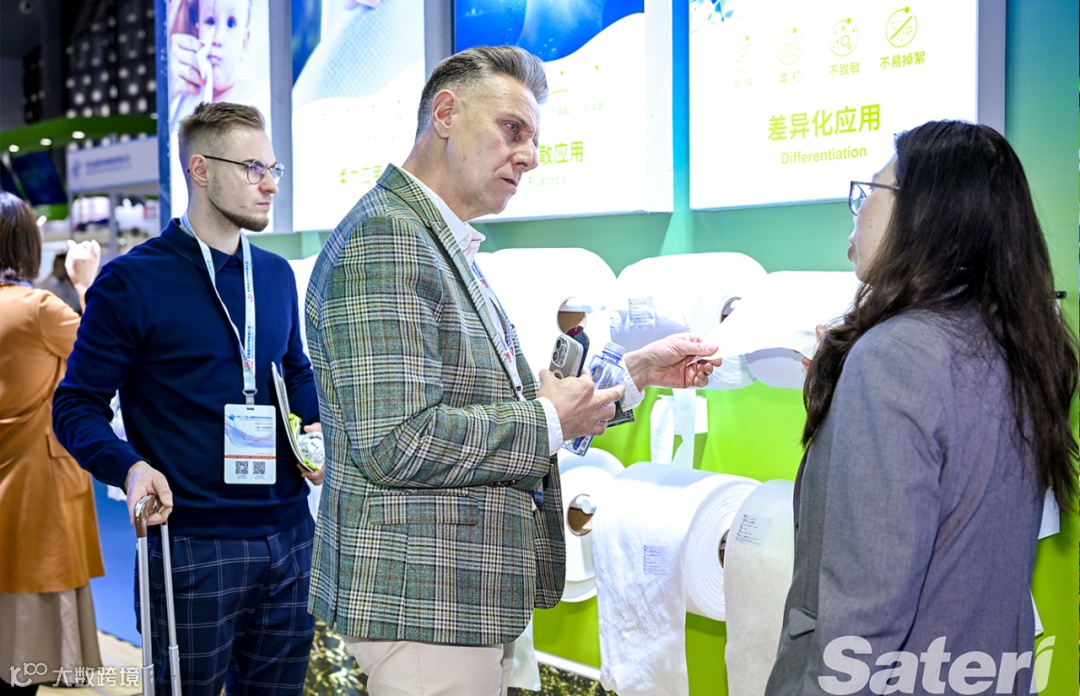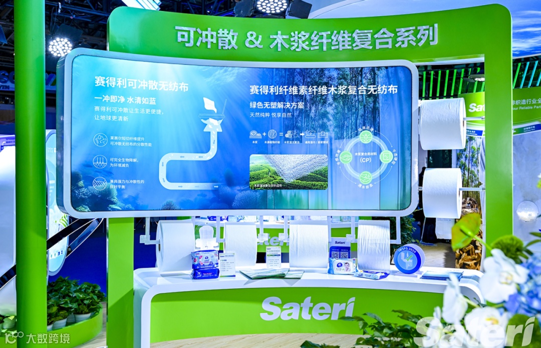 展会现场,赛得利带来的可持续产品组合——莱赛尔纤维、优可丝®纤维、可冲散无纺布、新一代全可降解木浆复合无纺布等吸引众多观众驻足交流。