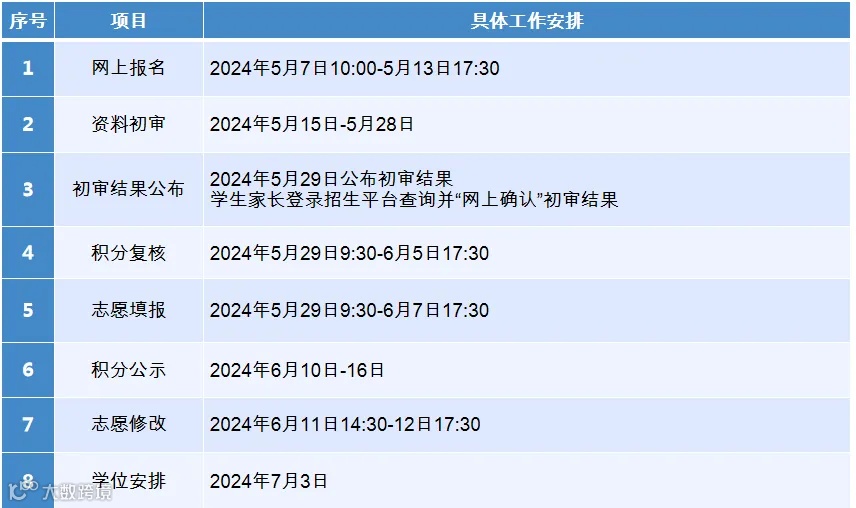 (五)2024年非户籍适龄儿童少年积分入学的工作日程安排: