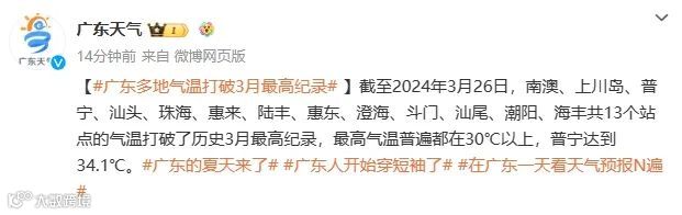 广东不少地区最高气温