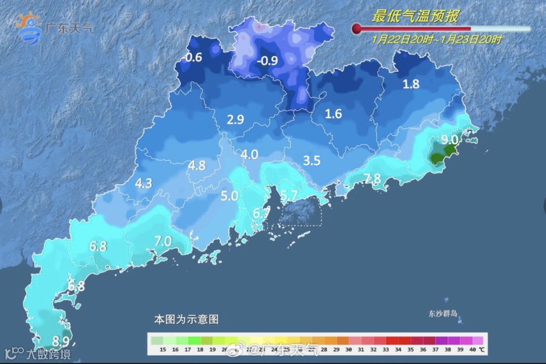 粤北、珠三角北部的山区,最低气温可达0℃以下并有冰冻。