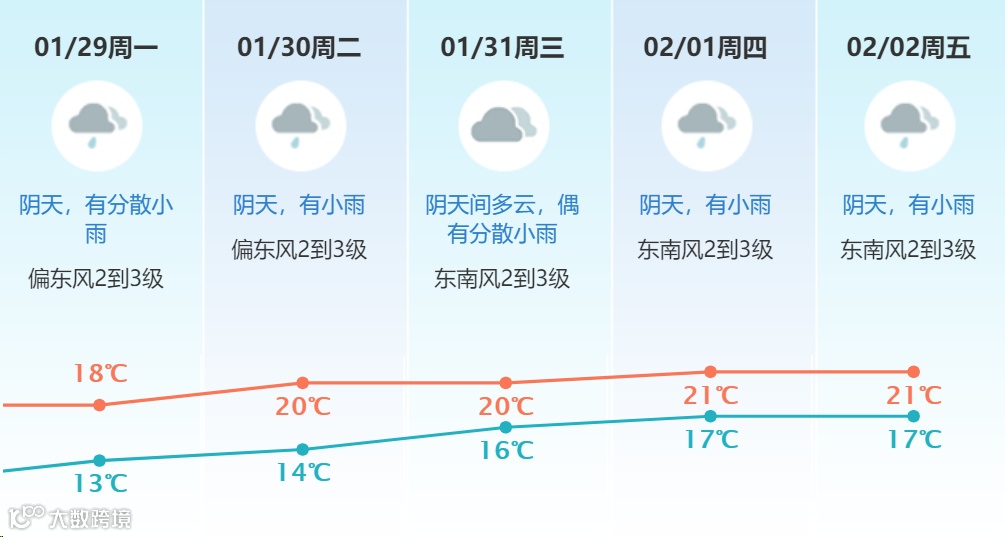1月29日 13℃到18℃