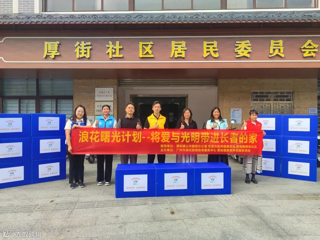 近日,厚街镇公共服务办依托东莞市“民生大莞家”项目,联合东莞市同德社会工作服务中心驻厚街镇居家养老服务项目小组、东莞市医养健康协会、厚街社区居民委员会,并携手广州市浪花智慧助老服务中心,共同在厚街社区开展“浪花曙光计划——将爱与光明带进长者的家”公益活动。活动向15户高龄长者赠送“爱心防跌包”与“爱心曙光包”,用暖心举措守护长者的居家安全。