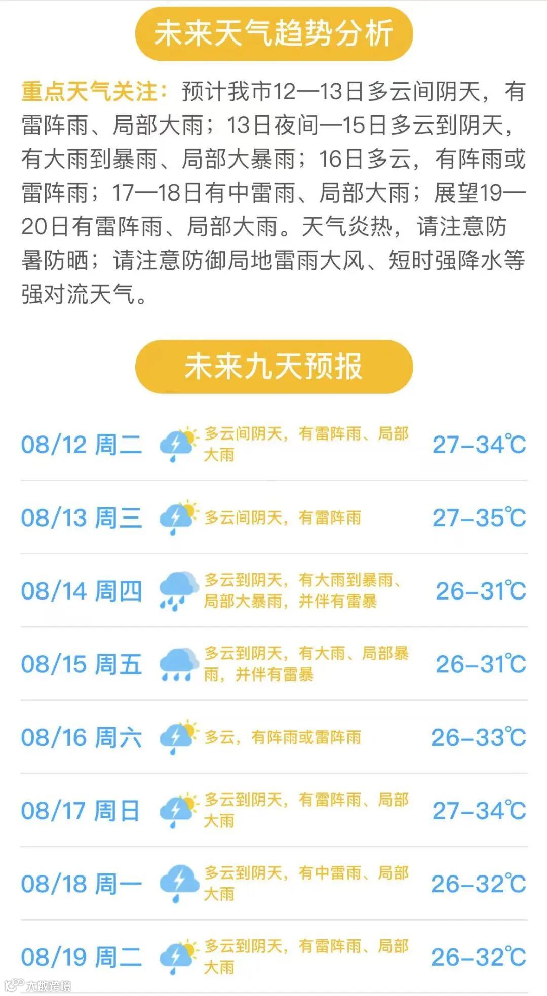 据气象部门监测预报