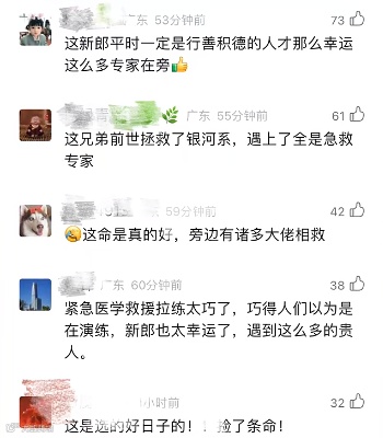 此时,李瑞金、李剑强、关永佳还在接力进行心肺复苏,专家专业的救援很快见效,大批急救专家赶到时,新郎已经恢复心跳,眼睛也睁开了,他茫然地看着,根本不知道他刚刚经历了生死危机。