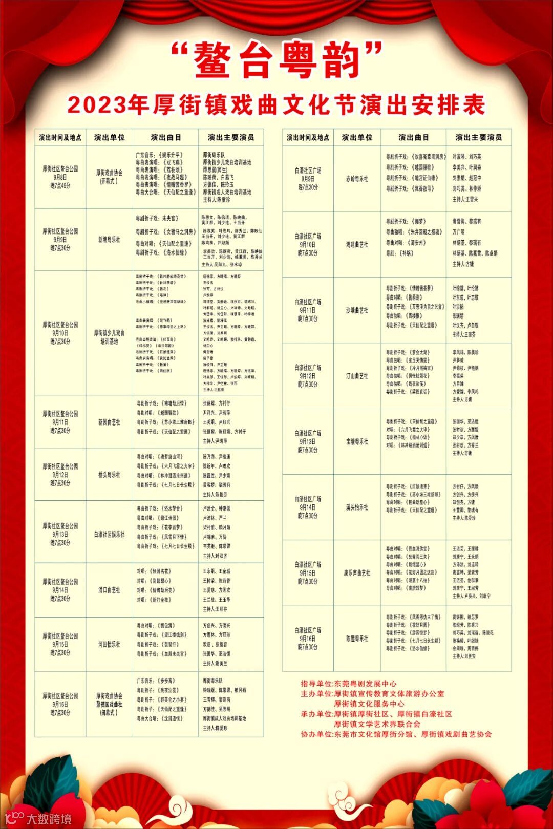 活动由东莞市粤剧发展中心指导,厚街镇宣传教育文体旅游办公室、厚街镇文化服务中心主办,东莞市文化馆厚街分馆承办,厚街镇文学艺术界联合会、厚街镇各社区协办,旨在进一步发展壮大业余文艺团队,激励社会文艺工作者的创作热情,繁荣民间文化活动,不断满足群众精神文化需求,推动厚街公共文化服务高质量发展,助力厚街建设文化强镇。