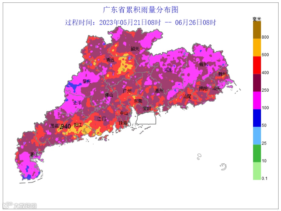 ▲2023年5月21日08时-6月26日08时累积雨量图
