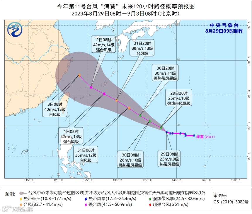 28日上午,今年第11号台风“海葵”(热带风暴级)生成,预计它将向西偏北方向移动,强度缓慢增强,9月1日夜间开始转向西北方向移动。