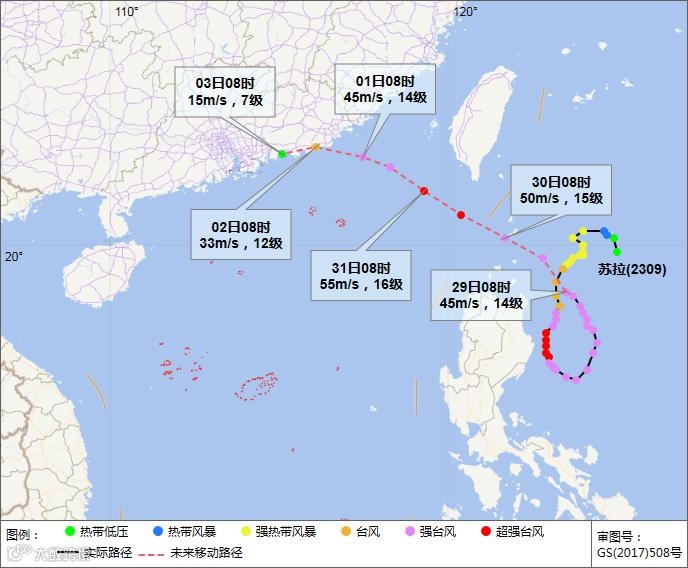 台风“苏拉”的路径