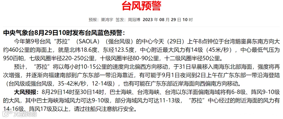 台风蓝色预警