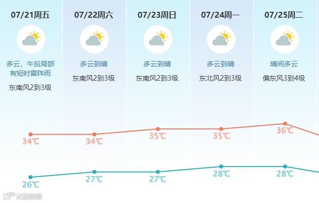 预计我市21日多云为主,午后局部有短时雷阵雨;