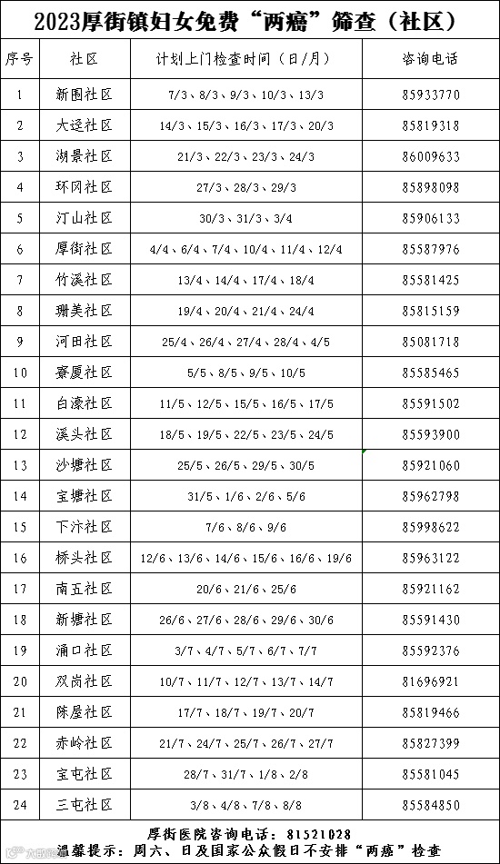 厚街第四轮免费“两癌”筛查开始啦!