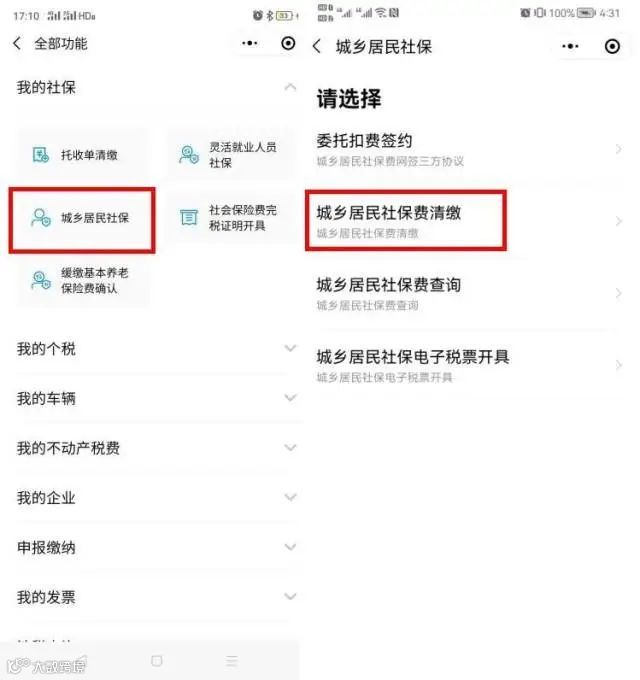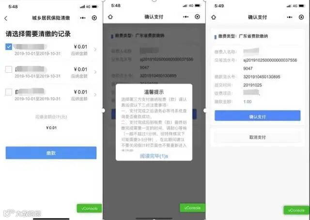 (2)自行缴费方法:参保人使用“粤税通”小程序的“城乡居民社保费清缴”功能自行缴费(详细介绍可参照上述线上办理内容);