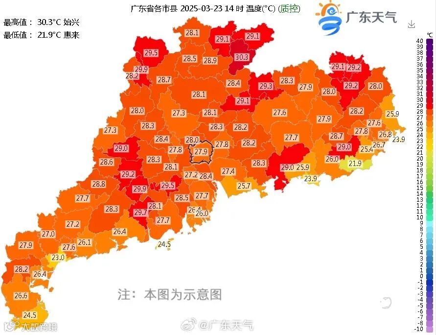 昨天,广东登上了全国高温榜
