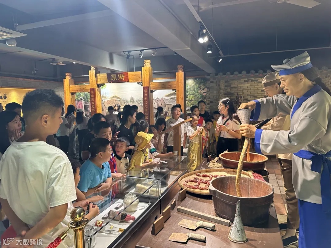 上午9时,一场别开生面的非遗研学之旅在鑫源文化博物馆拉开了帷幕。“厚街腊肠是广东省非物质文化遗产,有着悠久的历史和独特的制作工艺,每一道工序都凝聚着对传统文化的敬畏与传承之心……”在博物馆参观环节,“小候鸟”们聚集在仿真腊肠制作场景前,认真听讲解员讲述“厚街腊肠”故事。随后,在老师的带领下,“小候鸟”们学习了解古风草花纸灯笼的制作,从选材、裁剪到粘贴、装饰,“小候鸟”们都发挥创意,制作出一个个独一无二的纸灯笼。