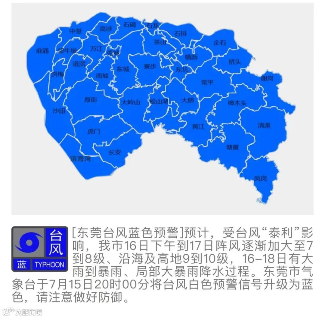 东莞发布台风蓝色预警