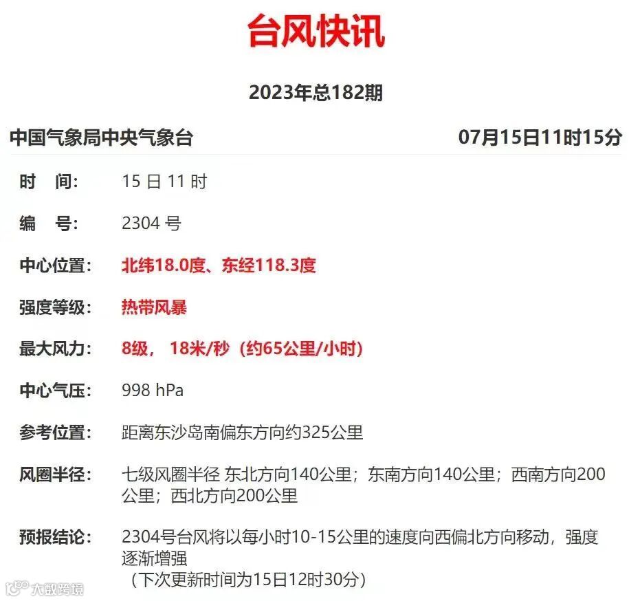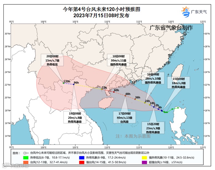 中央气象台最新预报,南海热带低压已于7月15日上午加强为今年第4号台风“泰利”。