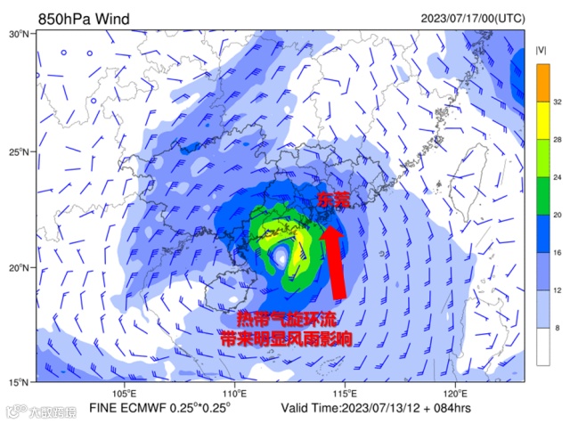 受其影响,广东南部、海南岛、广西南部等地累计降雨量在100毫米以上,局地可达250~450毫米。