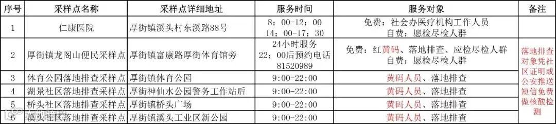 5、请提前查看自己的粤康码,粤康码“红码”人员,请勿前往核酸检测点。请“黄码”人员到龙阁山便民采样点、体育公园落地排查采样点、湖景社区落地排查采样点、桥头社区落地排查采样点和溪头社区落地排查采样点检测。仁康医院核酸采样点不为黄码人员提供核酸采样服务,黄码人员请勿前往。
