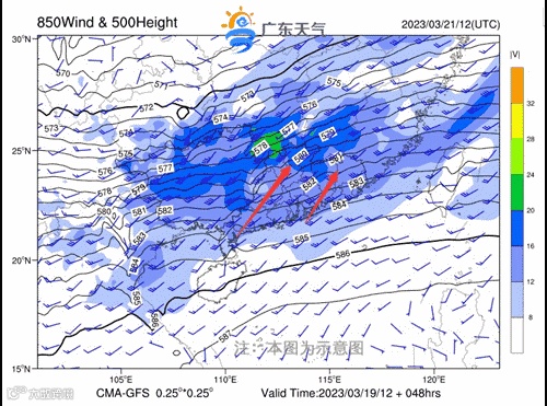据广东天气消息,22日夜间到24日,受南支槽、切变线和冷空气影响,广东省将出现今年首场大范围强对流(雷雨大风、冰雹)和大雨到暴雨,局部大暴雨天气过程;粤北、珠江三角洲、云浮和茂名有大雨到暴雨,局部大暴雨,其余市县阴天有(雷)阵雨局部大雨;部分市县伴有8级左右雷雨大风、冰雹等强对流天气。