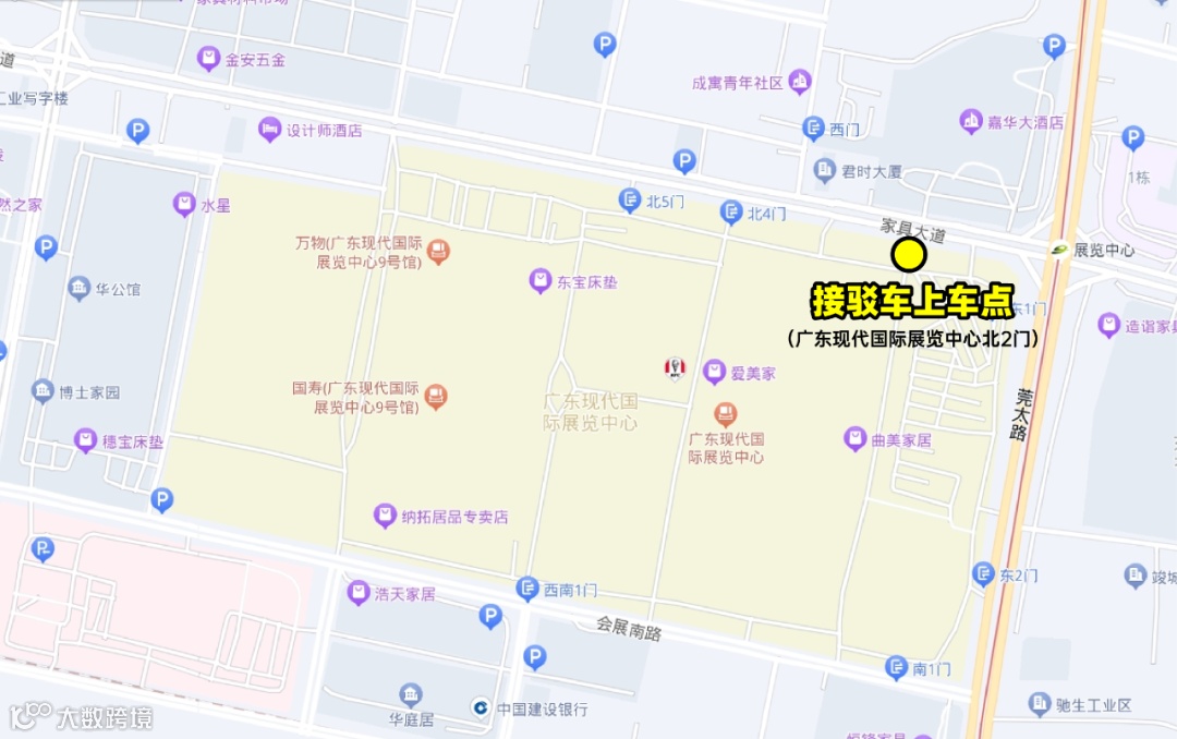 接驳路线1:广东现代国际展览中心(北2门停车场)---黄金小镇(主会场)