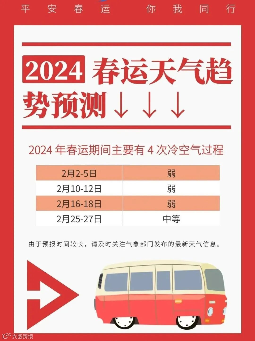 春运期间将有4次冷空气+5次降水