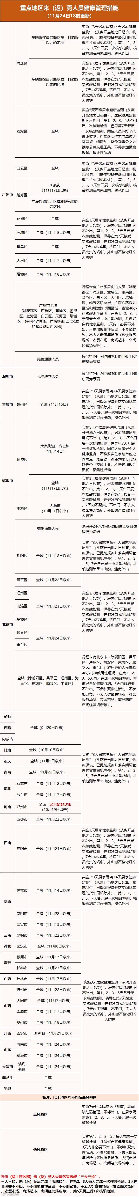 1. 全国重点地区来(返)莞人员健康管理措施