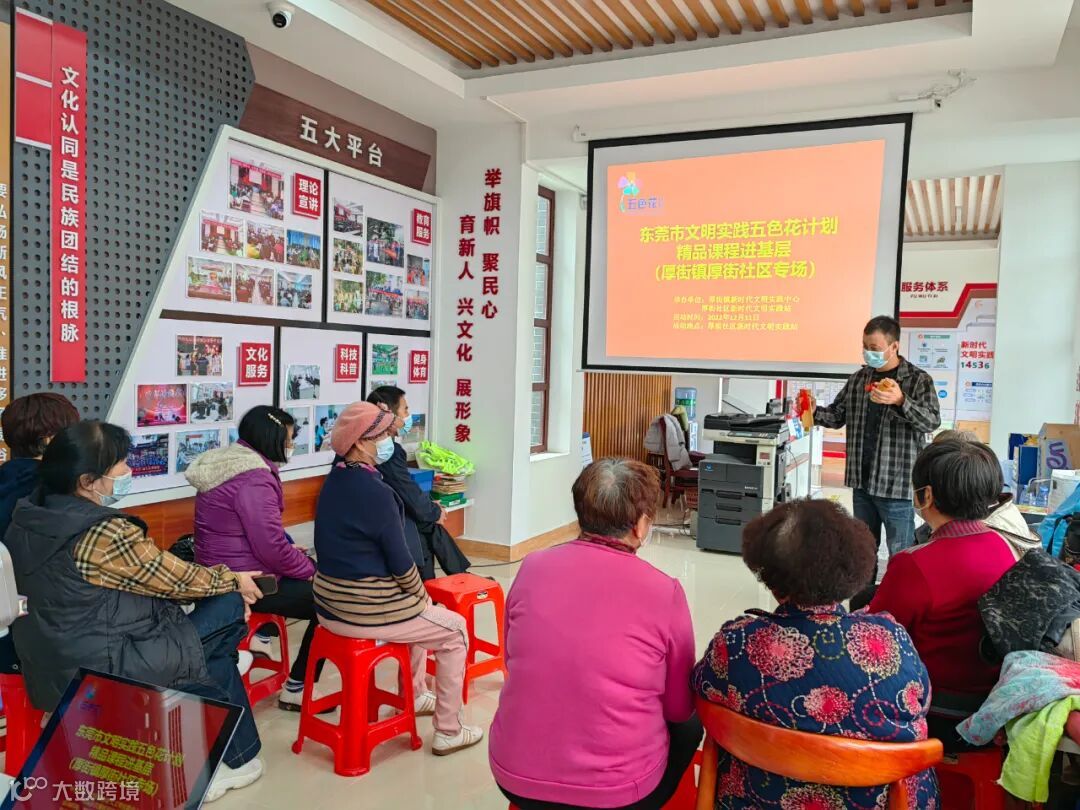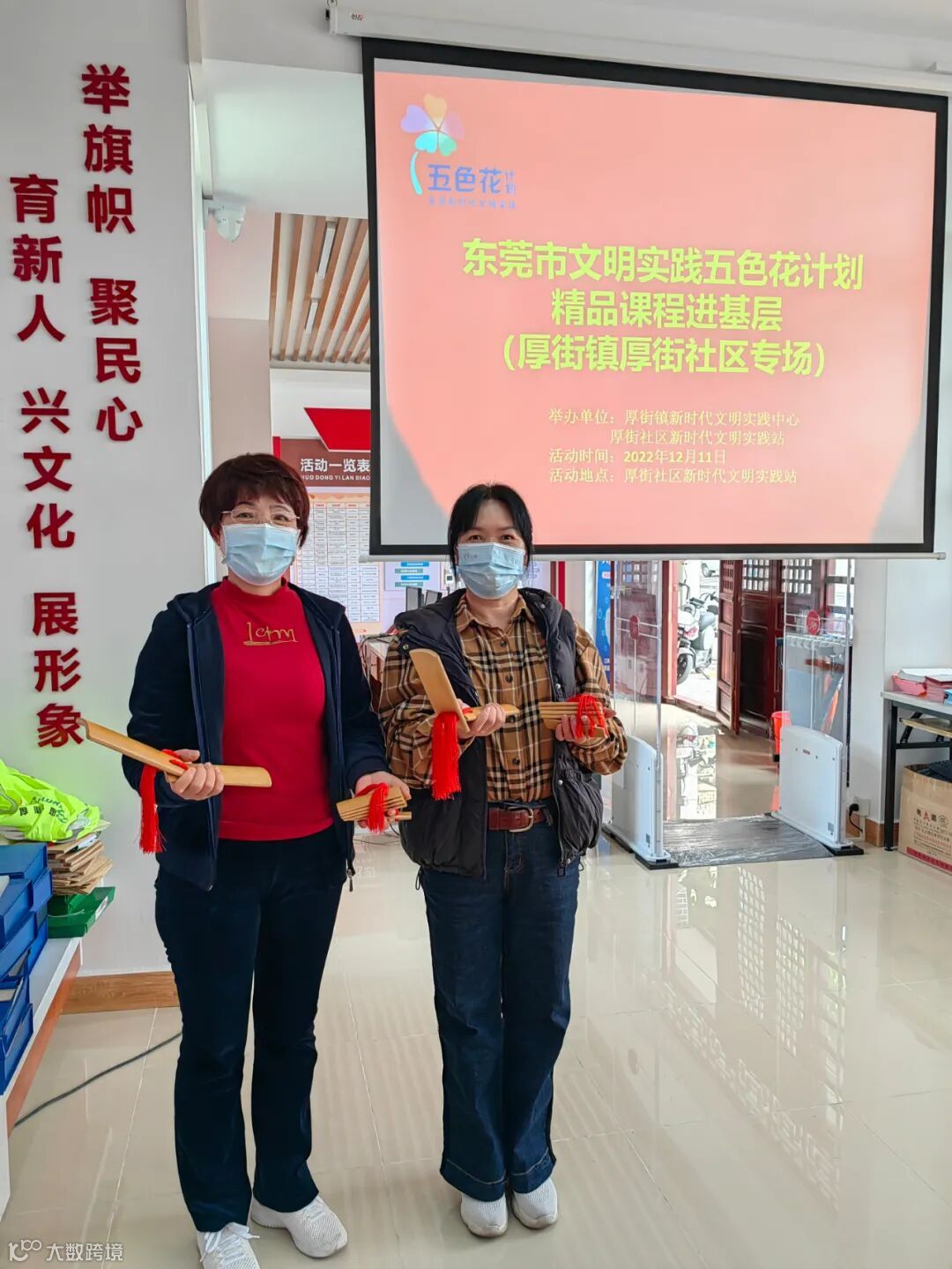 为充分发挥新时代文明实践阵地传播新思想的作用,12月11日,厚街社区新时代文明实践站举办东莞市文明实践五色花计划——精品课程进基层(厚街镇厚街社区专场)活动,为社区群众带来曲艺快板培训课。