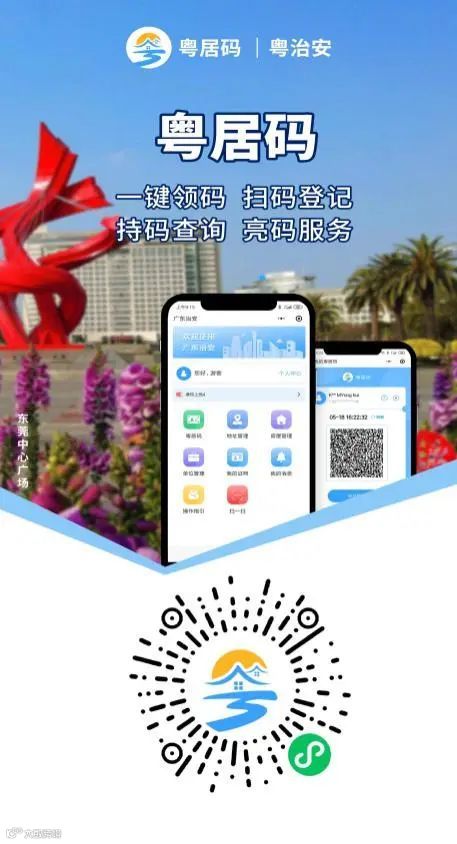 第一步:市民通过微信搜索小程序“粤居码”或扫描葵花码,打开“粤居码|粤治安”小程序。