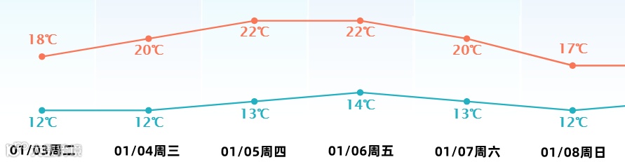 预计1月3日有弱冷空气到货,云量增多,气温稍微有点下降,早晚较寒冷,昼夜温差较大。