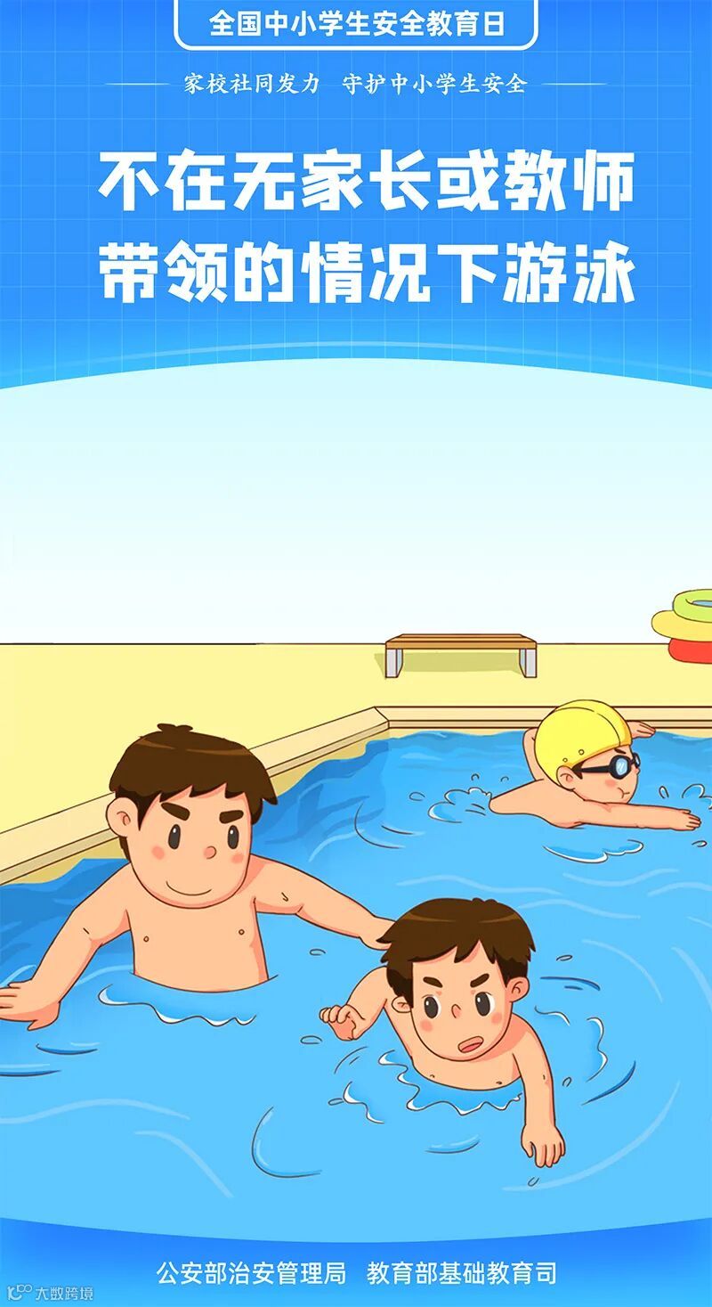 4.如果孩子自己下水游泳,那么,大人需要时刻有效看护。