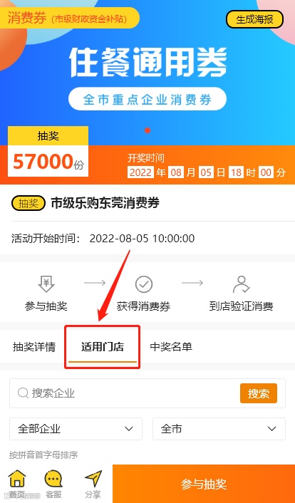 通过“乐购东莞”小程序报名抽奖