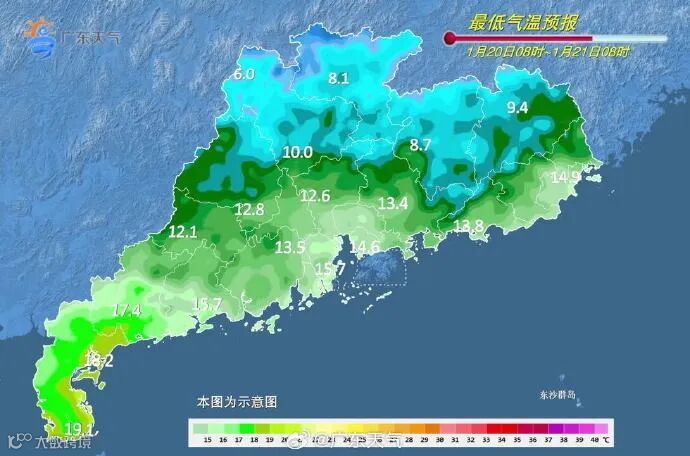 20日,强冷空气前菜,粤北明显转冷,中南部白天后半段才开始有感觉,因此冷感还不明显。夜间,全省沿海全线有7-8级东北风,阵风9级。