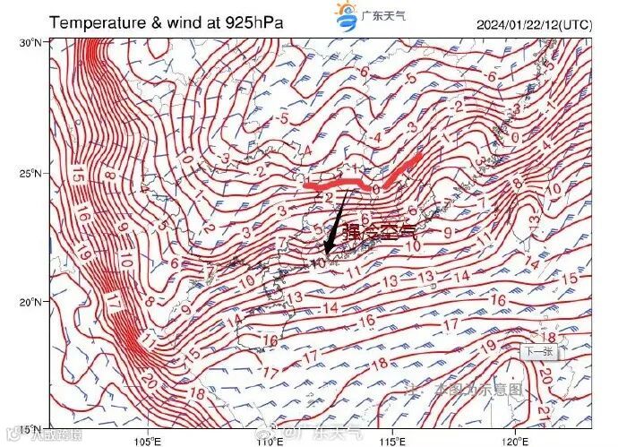 展望22日-23日,又一股冷空气补充影响,全省以阴雨天气为主,气温进一步下降,体感寒冷。其中,粤西北山区有冻雨或小雪,中南部有分散小雨。粤北的北部高寒山区气温可达0℃及以下,有冻雨或小雪。我省海面、南海东北部海面风力进一步加大。