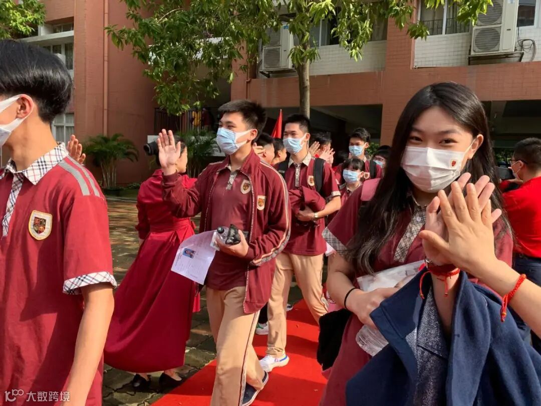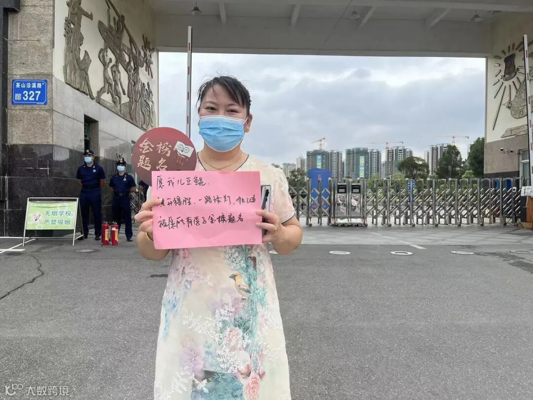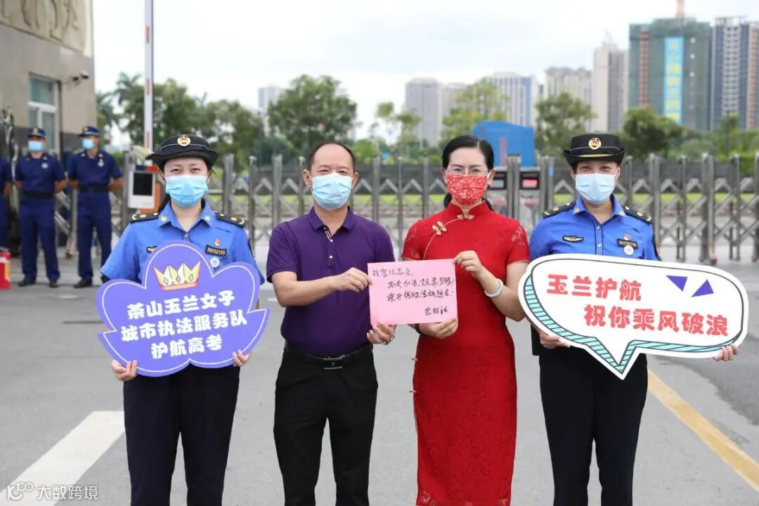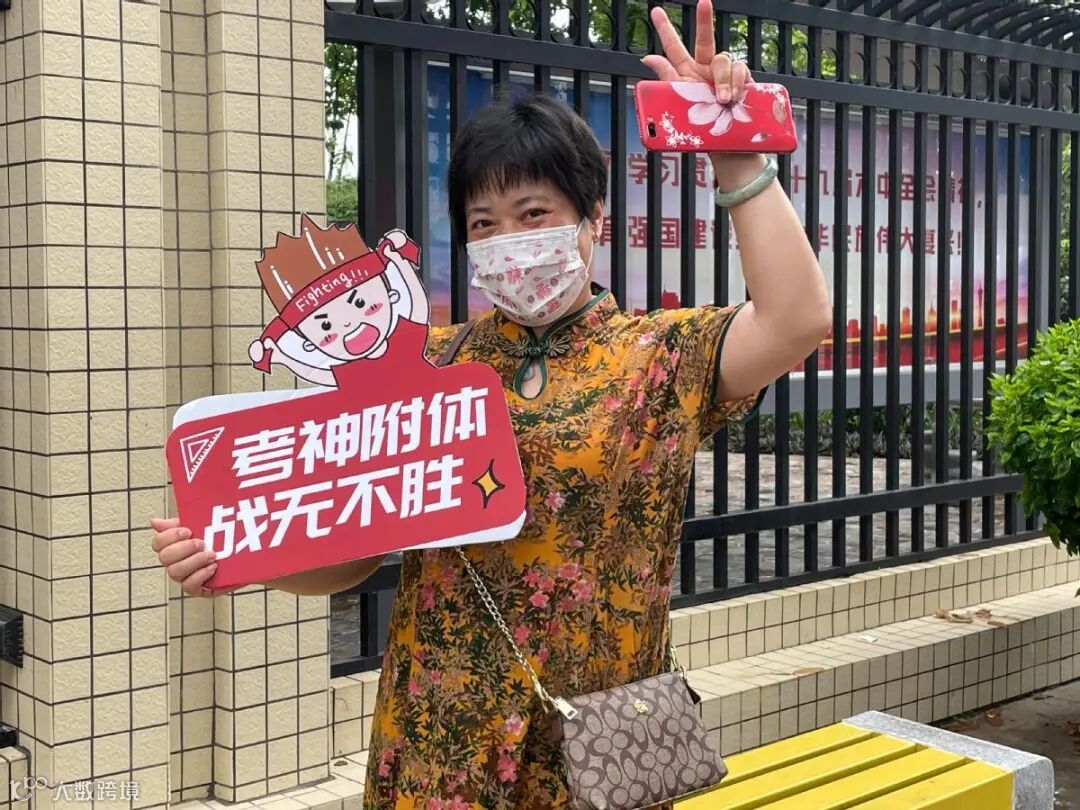 ▲常平考生家长身穿旗袍到现场为孩子加油鼓劲。