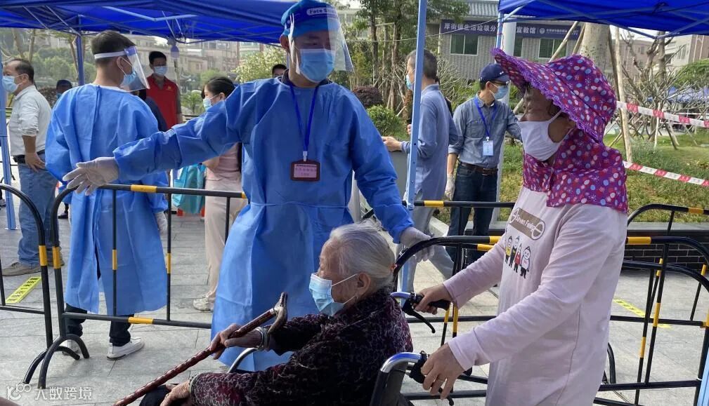 对于行动不便居民,厚街社区党委安排医护人员、社区工作者、志愿者组成入户采样队,为他们提供上门核酸检测服务。