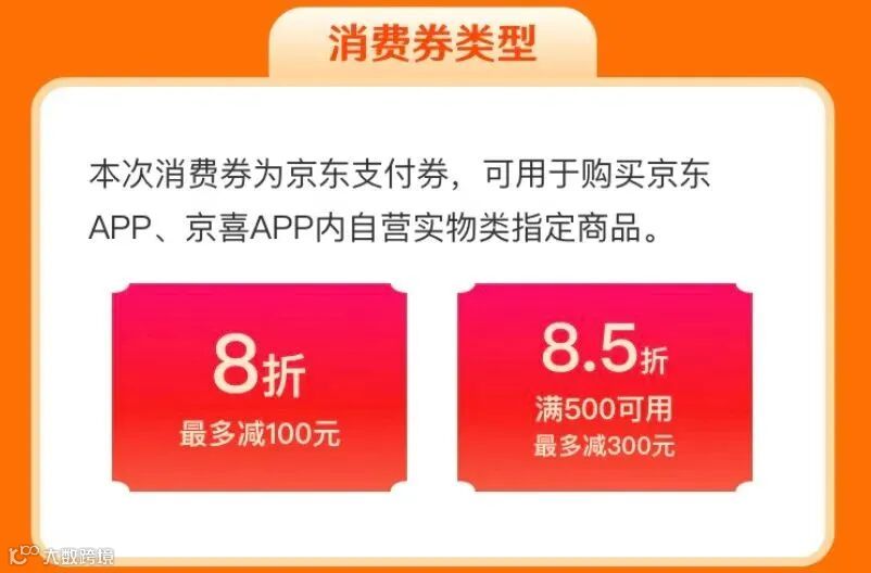 本次东莞消费券为京东自营商品支付券,包括8折(折扣优惠100元封顶)京东支付券和满500元打8.5折(折扣优惠300元封顶)京东支付券各一张。单笔订单只能使用一张,两张消费券不可叠加使用。