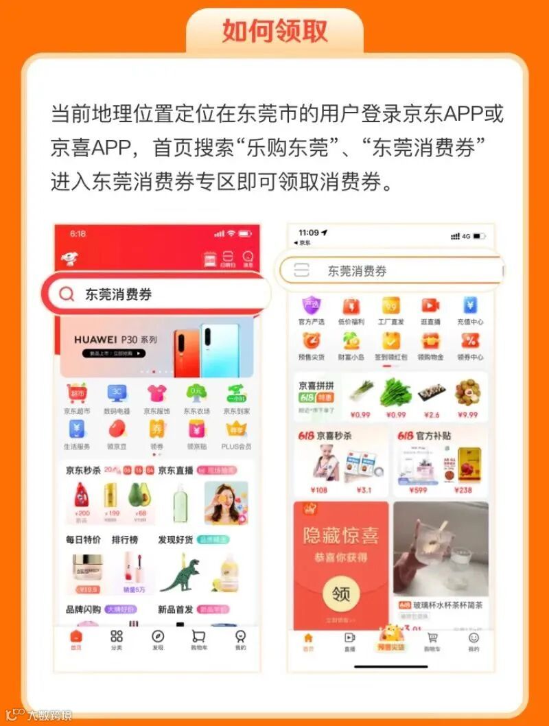 领取:领取消费券时的实时地理位置定位需为东莞市,用户登录京东APP或京喜APP,首页搜索“乐购东莞”、“东莞消费券”进入东莞消费券专区即可领取消费券。每种面额消费券同一用户每日均限领一次,每日发放消费券数量有限,先到先得,领完即止。