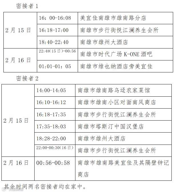 密切接触者活动轨迹(新圩镇):