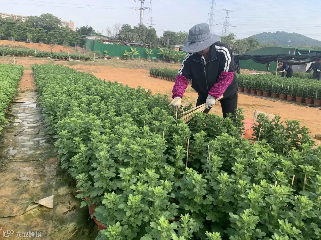 除了年桔,该花场还种植了年花。小编看到,工人正在为菊花加上固定的竹子,一片郁郁葱葱的菊花,初开的花蕾,星星点点的点缀其中。据了解,今年李老板种植了2万多盆不同品种的菊花,包括金丝菊、紫牡丹、大红花等品种,由于还没到盛花期,大部分菊花只看见几朵小小含苞欲放的花蕾。“再过10多天,就迎来菊花的盛花期,希望那时候花市能顺利开放,年桔年花的销售情况能有所好转。”李老板说。